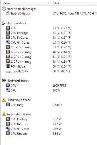 Igencsak forrósodik az utóbbi időben a laptopom (Dell N5110, i7-es procival, 1,5 éves): gépigényes játékoknal (pl: The incredible adventures of Van Helsing), már borzasztóan melegszik , az egyes maghőmérsékletek 95-99°C között mozognak (bár nem folyamatosan) 1-1,5 óra játék után, más játékoknál is 70-85°C között...