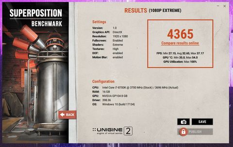 Tuningképességei limitáltak, 2025Mhz tájékán vége a GPU-nak, de mivel elég jók a hőfokok, így nagyon nem skáláz le, 2Ghz-en meg is áll. Micron RAM-os, ennek ellenére meglepődve tapasztaltam hogy +550Mhz OC leledzik azért ott is. Ami az eredményt illeti, papírforma, OC-val GTX 1080 szint.Firestrike default: [link]