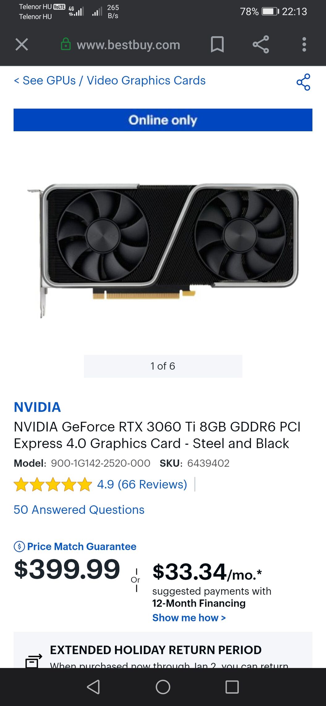 Ismételten felment a kriptobányászat, az Nvidia pedig a kiskereskedők kiszolgálása helyett face to face-ben azonnal a kínai bányáknak adta el a legyártott több ezer darabszámú kártyákat. Néha Néha befut 4-5db a boltokba, körülbelül ennyi ami megvehető. Emiatt az a 4-5db horror áron kerül eladásra. Ár érték arányban pedig a régebbi kártyák is drágulnak. Áprilisra saccoljuk, hogy lesz készlet és vissza áll a rend.