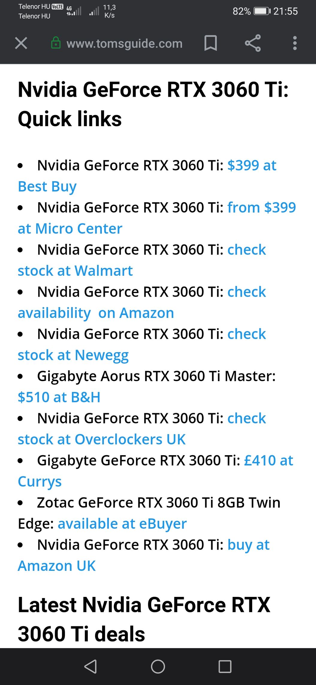 Érdekes ez amúgy a Magyar árakkal. Itt Svédben nem szálltak el az árak de kártyák itt se nagyon akadnak. 3090-ből van két fajta raktáron, 3060 Ti meg igaz nincs raktáron de rendelhető 179K-tól. -