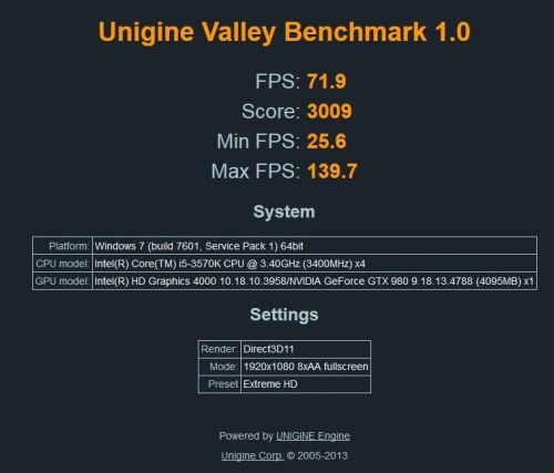 Nincs azzal az eredménnyel semmi baj, és "kihajcsa". Nálam 55.2FPS volt, az 1-2 FPS simán benne van a winben, de még az sem vészes, ha CPU-limit (bár sanszosabb a lap és a kevés fázis), mert a Valley egyáltalán nem egy "hótt" terhelő teszt. Tolj neki Heavent. GPU-t és VRAM-ot ha emeled gyorsulnia kell, ha limited van, nem a CPU. Nálam máris 63.1FPS-re ment fel. Nem tette volna, ha CPU limit van. Csak félrevezetnek.
