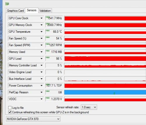 A kártya alapból 1316MHz-re boostolt, ezt sikerült feszültségemelés nélkül feltornászni 1513MHz-re, a RAM-okat pedig 7800-ra rántottam fel. Ez eddig 4 órányi Unigine Heaven és 3 órányi Far Cry 4 stabilnak bizonyult, kíváncsi vagyok, hogy egy kis plusz fesz mennyi mozgásteret ad még.