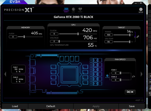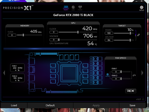 Nálam a 2080 Duke azt csinálta,hogyha elérte a 74-75 fokot,felpörögnek a ventik 3600RPM-re (120%).