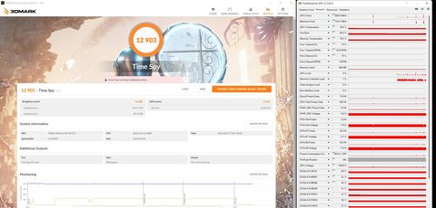 A lenti képek pedig 0,975V 2100Mhz +1000 RAM, itt TimeSpy-ban épp nem éri el 269W-os power limitet. 1400RPM-nél itt sem megy feljebb, ez nem hallatszik ki a hangszigetelt házból