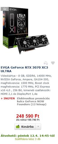 Naszóval... Hála omfgk-nek, van egy Gigabyte 3070 rendelésszámom, ha valaki szeretné.