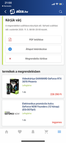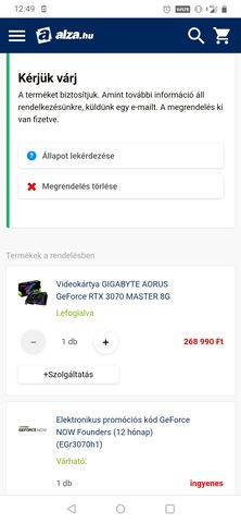 nekem az Eagle 3060 Ti néz ki így, csak ott a kártya várható, és a GFN lefoglalva, szóval érthető hogy azt miért nem küldik (eredetilega Várhatónál még dátumot is írtak, aztán eltűnt)