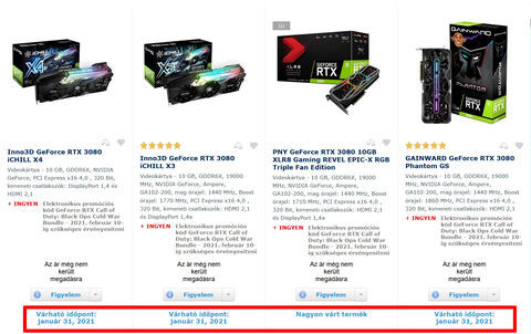 Egy 180 körüli 3060Ti-vel én is elégedett lennék, de amíg sehol nincs konkrétan semmi addig csak a várakozás marad. -