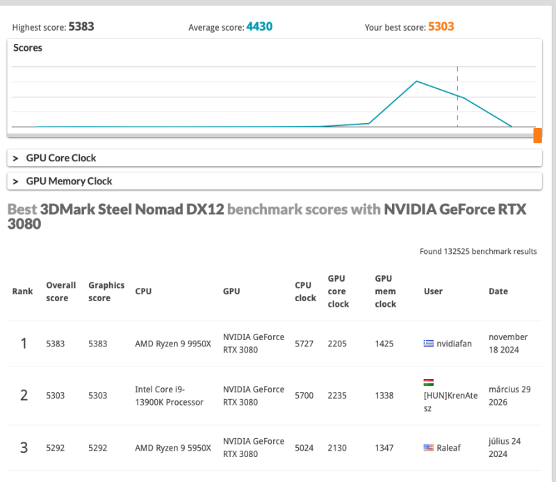 Amúgy az adatlapodon látható konfingban csücsül a 3080?