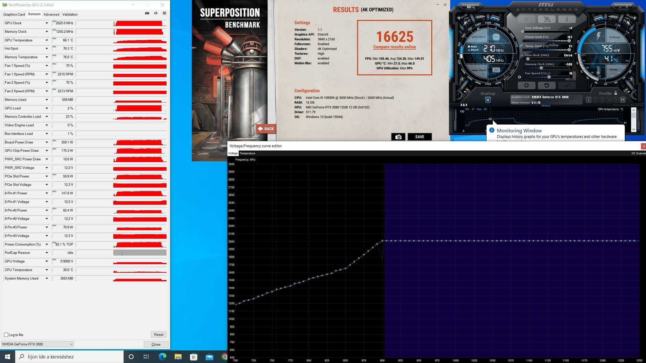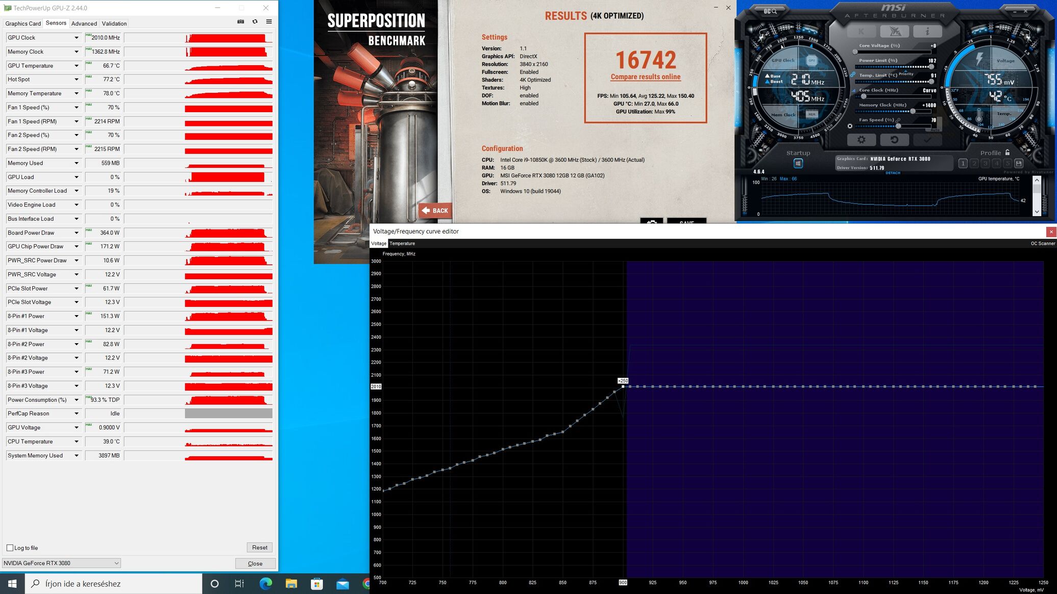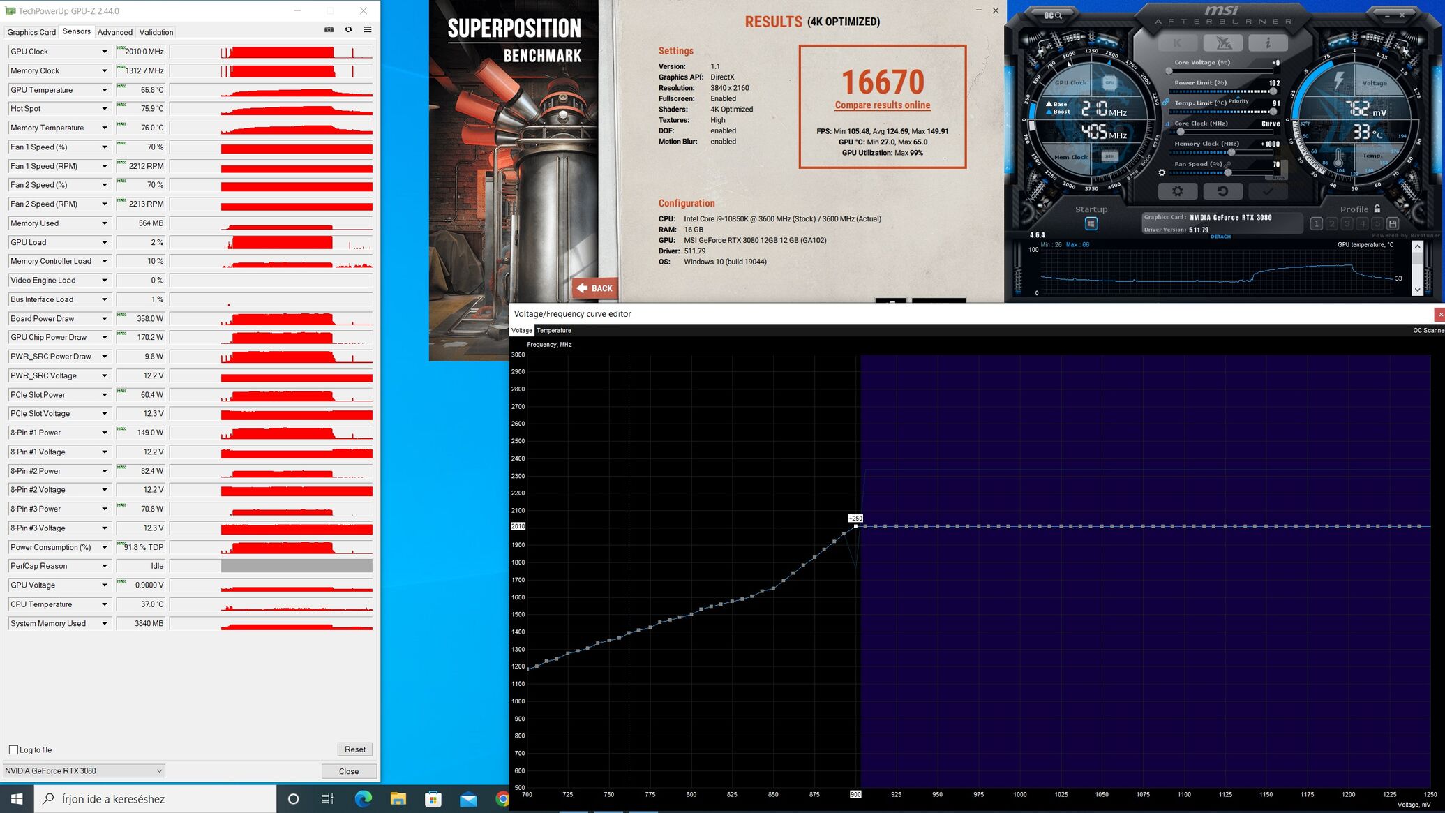 Ahhoz amit a tdp limites asus tuf 3090 350W-on hozott alulfeszelve ~1900MHz-en, ezzel be kellett kajáltani a 390-400W-ot és 2050-2070MHz környékén járatni.