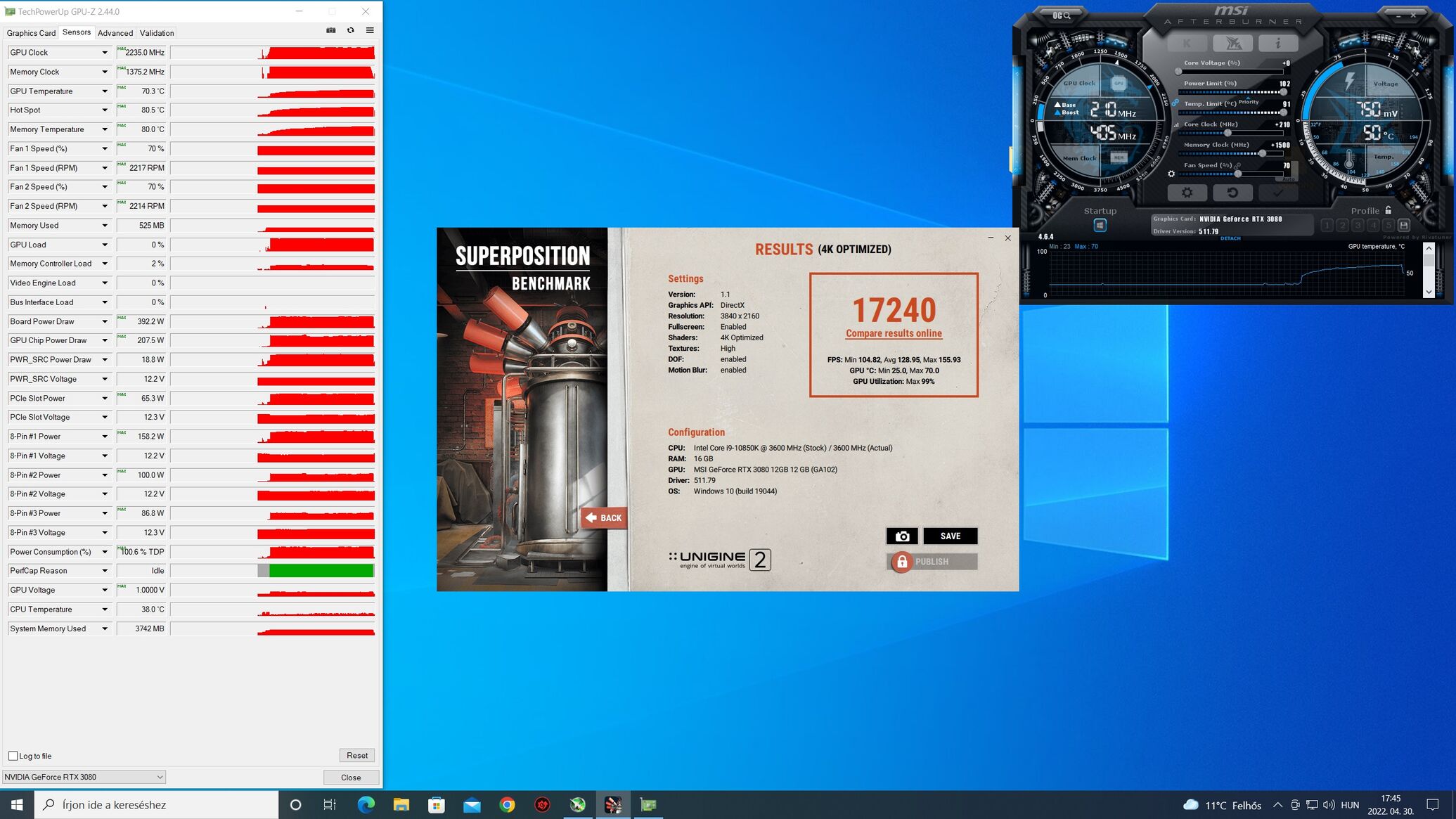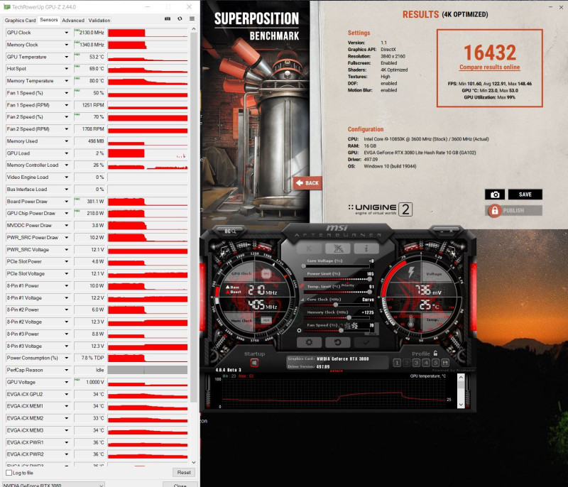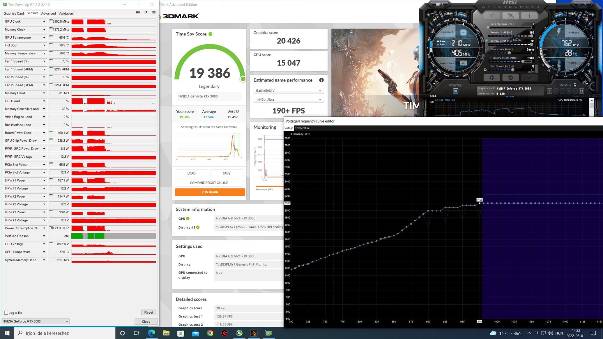 Ahhoz amit a tdp limites asus tuf 3090 350W-on hozott alulfeszelve ~1900MHz-en, ezzel be kellett kajáltani a 390-400W-ot és 2050-2070MHz környékén járatni.