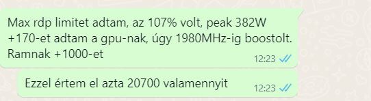 Majd csinálok tesztet ram alapon, +500,+1000,+1500, hogy milyen különbséget hoz azonos gpu órajel mellett.(tdp limiten belül, hogy látható legyen)