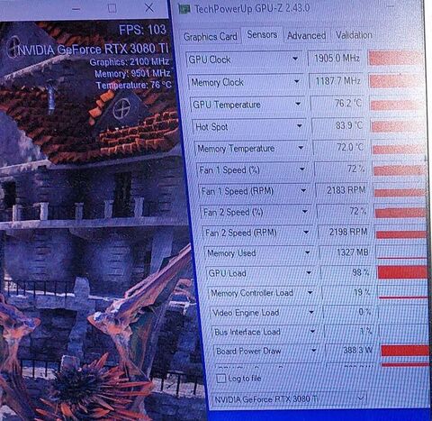 Izzasztóbb játéknál, mint metro exodus ee, lehetett 75-77 fok körül is a kari.Volt 3080 FTW3 Ultra is előtte, az kb 5 fokkal hűvösebb volt hasonló beállítás mellett.