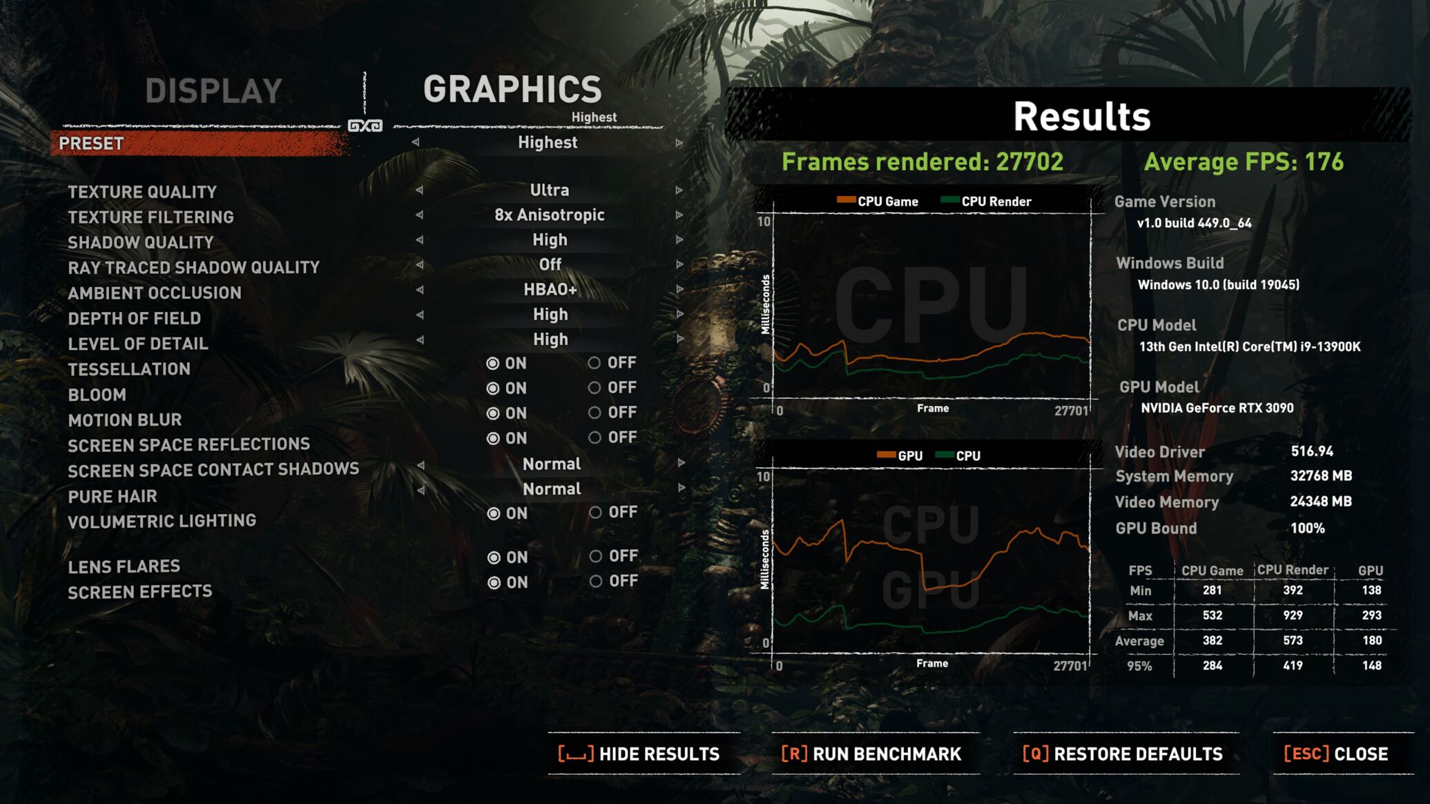 Zeb kedvenc tesztje a Sottr fullhd, ott közel +100fps(85) a 13900K javára
