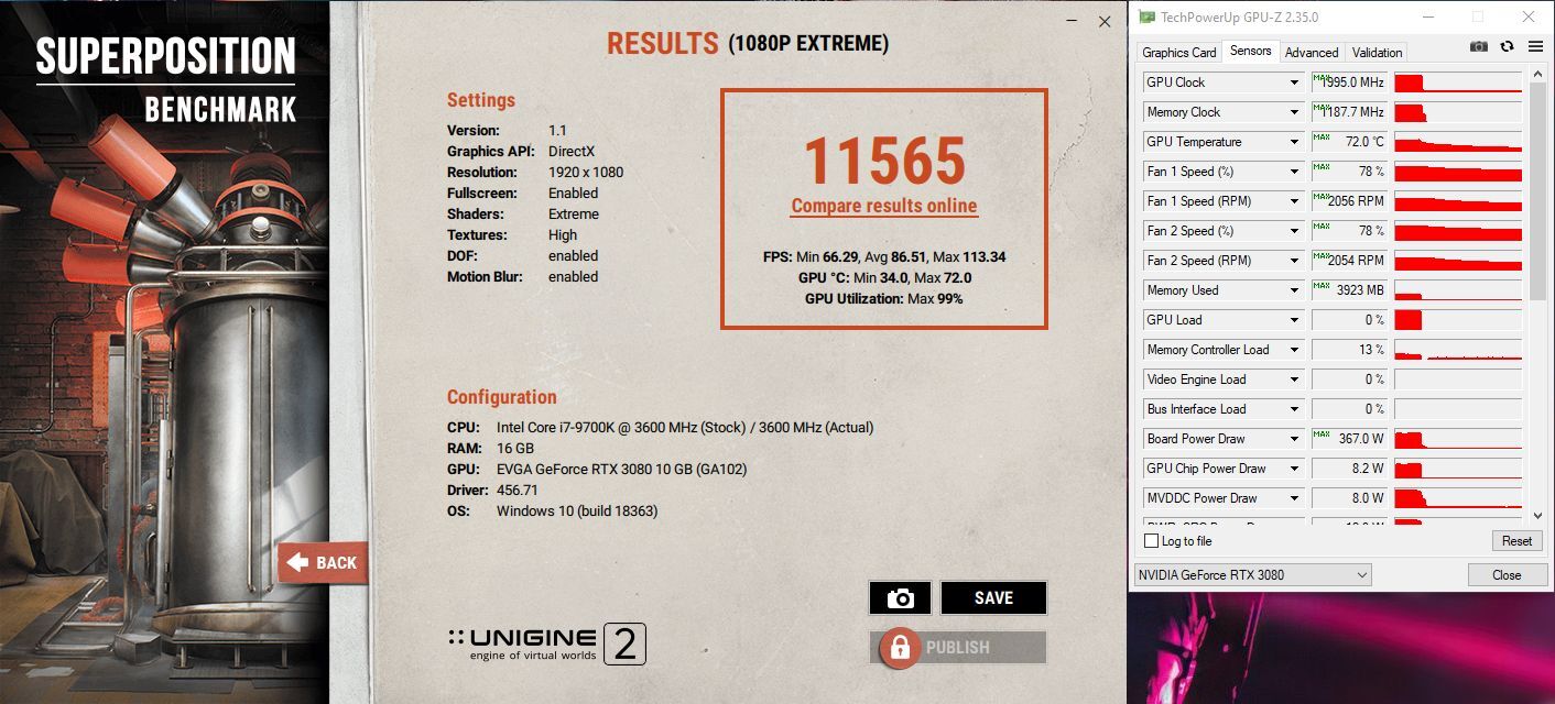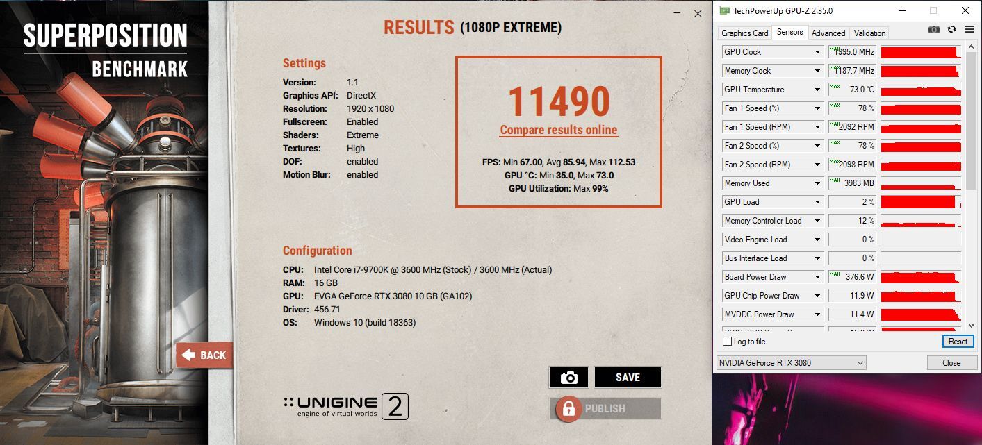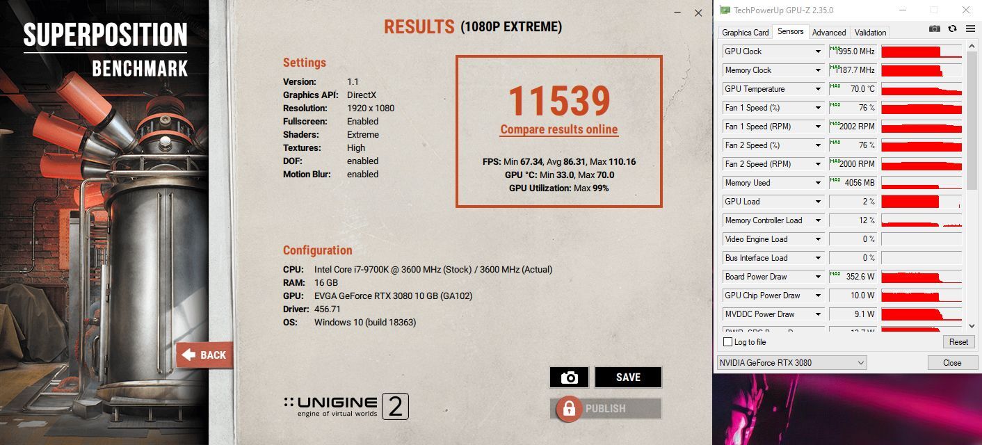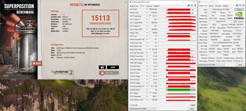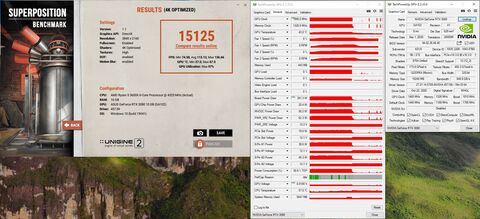 Egy kis "on". Alap booston elkezdtem alulfeszelni a EVGA GeForce RTX 3080 FTW3 Ultra gaminget. A kiinduló állapot, amire boostol az 1995 MHz 1081mV-on -> 400W-ot. Nem néztem meg, hogy mennyire stabil, csak 1-1 Superpositiont futtattam. A memóriát nem rángattam, az alapon volt végig.