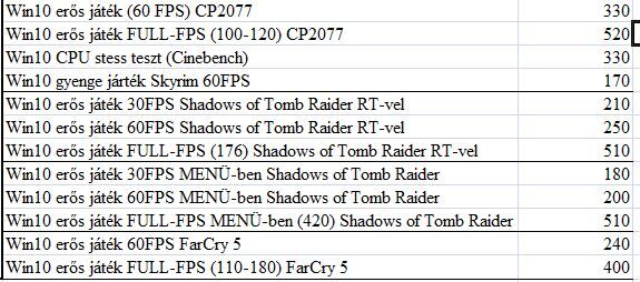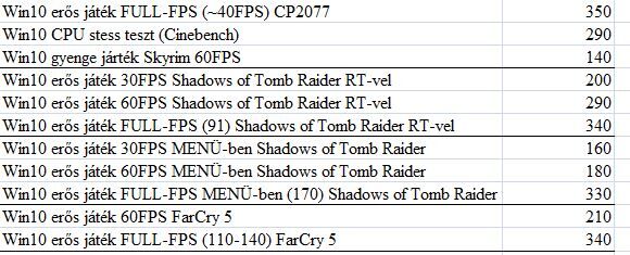 Csak pár példa, összehasonlítva a korábbi 2070-el, minden beállítás ugyan az, a komplett gép fogyasztása, minden benne van, a sok SSD+HDD és egyéb!