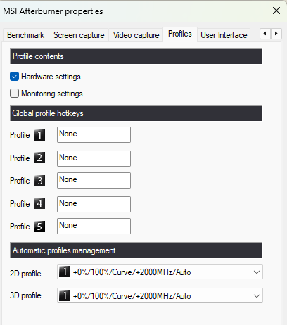 Másnak is csinálja amúgy az Afterburner, hogy hiába van kiválasztva egy profil, hogy automatikusan azt használja minden indításkor, mindig stockon megy és minden egyes alkalommal rá kell nyomnom, hogy apply. Látszólag azt mutatja, de mégsem.