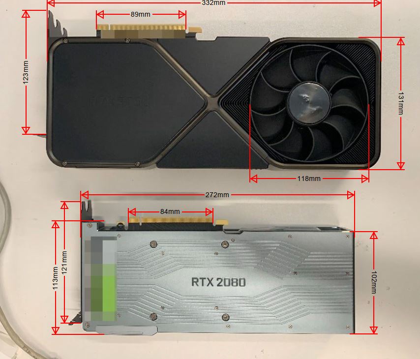Az optikai csalódás miatt, szögeltérés, távolság stb. látszódhat az új kártya lába kb. 5 mm-el hosszabbnak, miszerint a 3 slot-nyi vastagság miatt közelebb van a kamerához vagy nem tudom ?