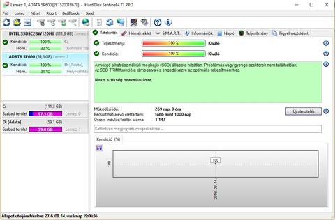 SSD: Kingston V300 60GB (régi vezérlős, nem agyonírt)