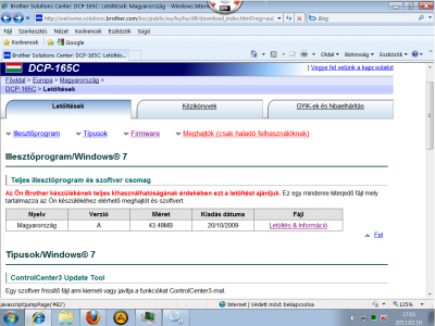 A hozzá kapott telepítő cd nem kompatibilis a win 7-el,de a brother honlapról megpróbáltam telepíteni a szükséges progit: