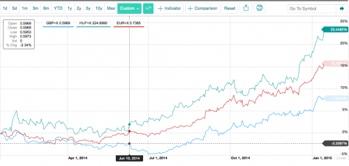 ebben az egészben az az igazán durva (vagy ironikus), hogy a gazdpolnak ez igazából a célja. Ha ránézel a csártra, látszik, hogy szigorú monoton trendszerűen gyengül a forint, és a kormányzat ettől várja azt, hogy az ország versenyképessége majd nő.