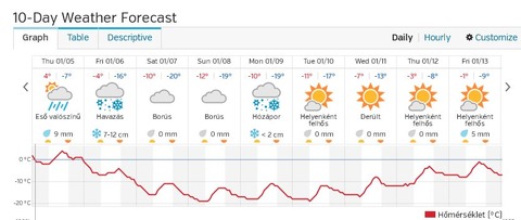 Miskolcra is -22-t mondtak ma reggel, mármint a holnap reggeli időszakra, most meg már csak -14-et..