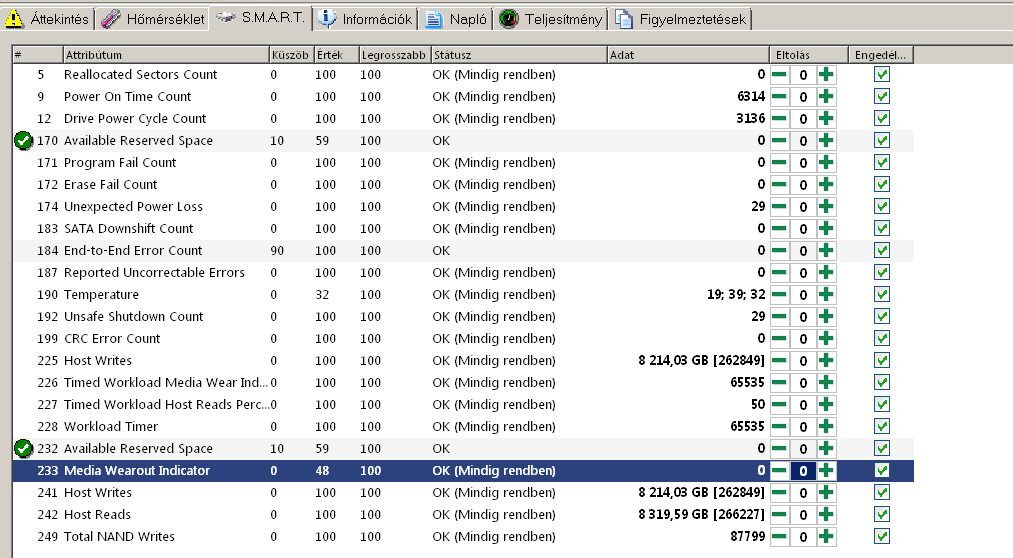 na, hát most én jövök SSD-s kérdéssel, nem Bleki.Az asztali gépemben egy 120 GB-s Intel 535 SSD van, talán 2015-ben vettem, azóta ezzel megy a gép. Csak a rendszer van rajta, kb. félig van.