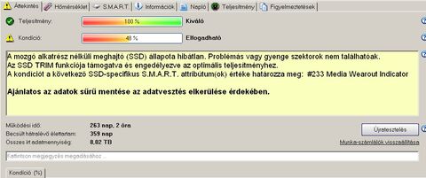 A kondíció elviekben azt (is) jelenti, hogy a gyártó által megadott információk alapján az élettartamából elvileg mennyi lehet hátra. A 0% jelentené azt, hogy elérte a gyártó által az élettartamra megadott értékeket, ami nem jelenti azt, hogy ne működne még évekig tovább akár.