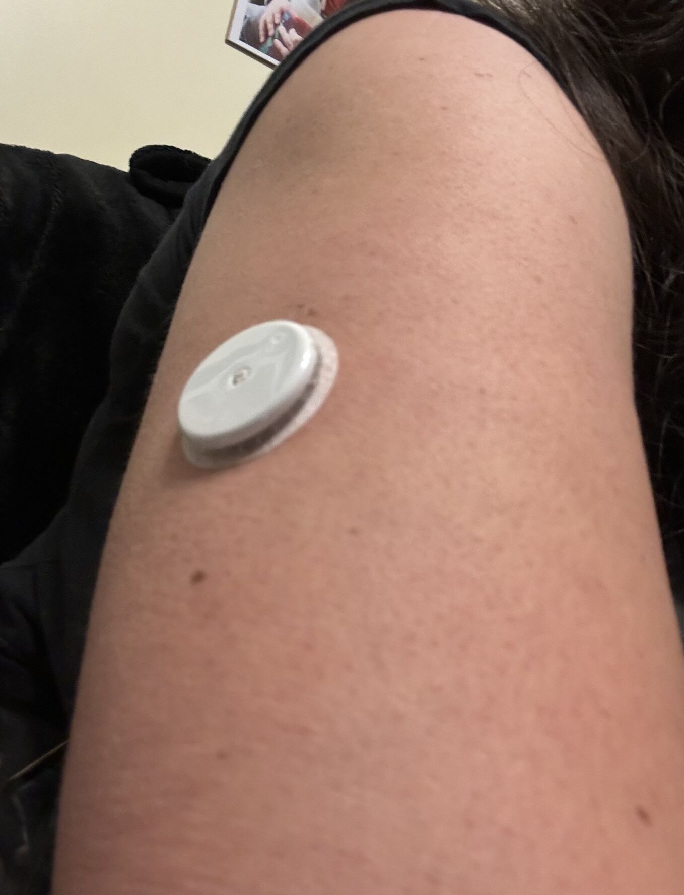 Ez is egy olyasmi lehet, pluszban a hasfalon látszott egy másik tapasz talán az meg az automatikus inzulinpumpáé.