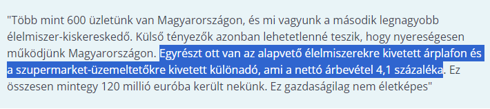 Megszólalt a magyarországi helyzetükkel kapcsolatban a Spar anyavállalatának vezérigazgatója. -