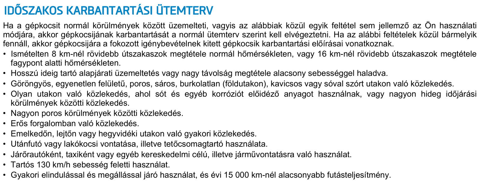 Persze, megvan pdf-ben. Felsorolja mi minősül fokozott igénybevételnek. Ez esetben általában felezi a szerviz intervallumokat. [kép] [kép] Motorolaj esetében nálam 20 ezer km-re állították az első olajcserekor az intervallumot. Közel-Keleten stb. nem engedi a w20-at, csak w30-w50-ig. Nyilván ott elvérezhet.