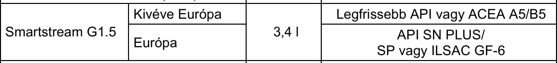 EU-ban 0w20 API SN PLUS/ SP vagy ILSAC GF-6.