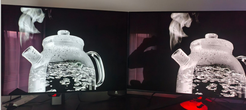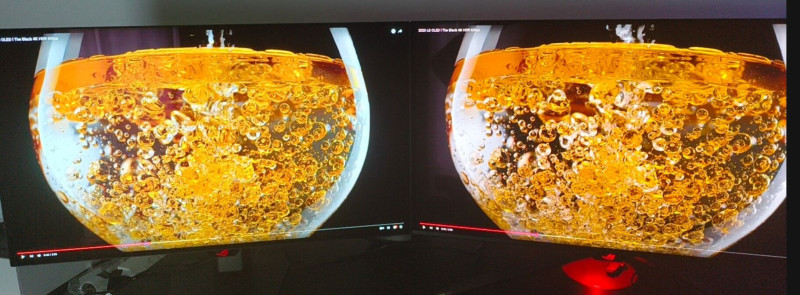 Korábban fel sem tűnt, hogy a QD-OLED nem is annyira "fehér", mint a WOLED, csak így egymás mellé téve. Az biztos, hogy önmagában nézve a legkevésbé sem zavaró a QD-OLED fehérje.