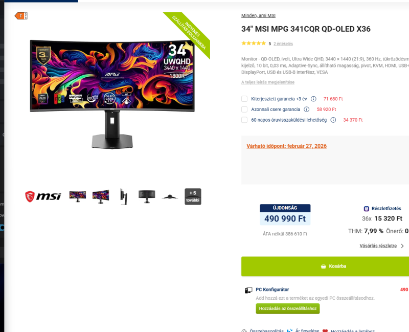 Kijött Magyarországon az első 1440p 360Hz ultrawide monitor (MSI modell). Hát... nem olcsó