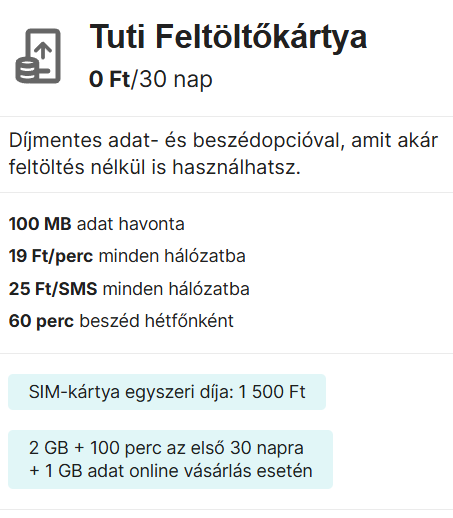tuti feltöltőkártyás csomaghoz adnak esimet?