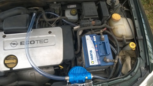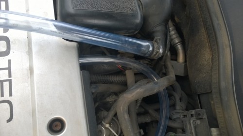 A leírás hihető,hiszen gyárilag is elvezetik a keletkező kartergázt a pill szelepházba.A szelepházfedélen van egy vékonyabb,és egy vastagabb elvezetés.A vékonyabb csövön az alapjáraron keletkezett kartergázt vezetik el,az megy hátra le a pillangószelep alá az alu öntvénybe, (azért ide,és így,mert alapjáraton a pillangószelep zárt állásban van)A vastagabb cső,a kerek fekete műanyag légbevezetőbe előlről van csatlakoztatva.A vastagabb cső a H-nál az a szétdurrant cső a kartergáz visszavezető.