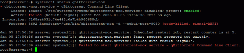 Ami a hibaüzenetben van a "systemctl start qbittorrent-nox" után: