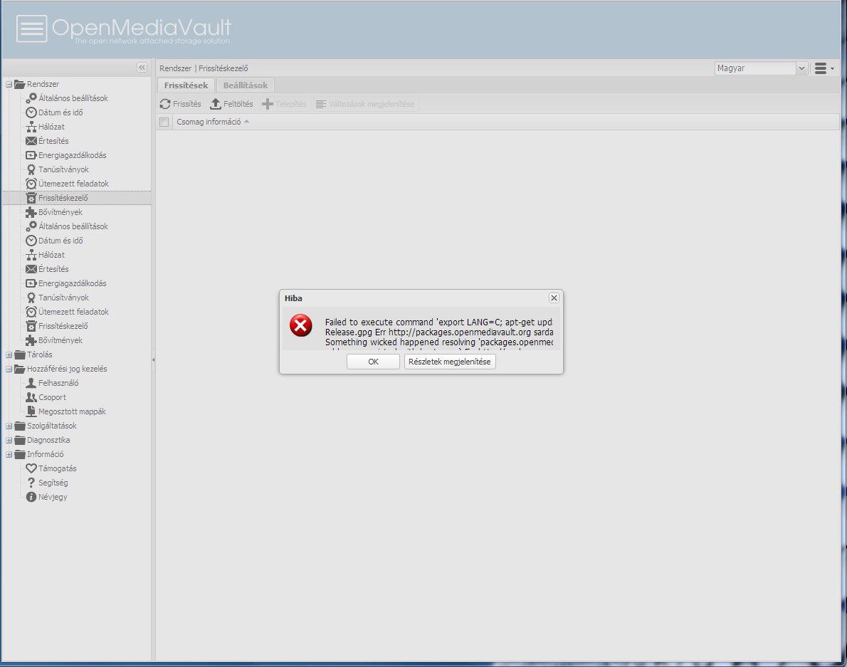 2. Le kell tölteni és telepíteni kell az OMV-extras plugin repository fájlt. A hogyan-ért katt ide!