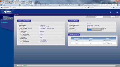 A resetelés előtt nem tudtam belépni a routerünkbe, hogy megnézhessem mi is a gond, tehát a Zyxel-t nem tudtam elérni ezen a címen: http://192.168.1.1/ Amit a neten találtam, hogy ez a címe.