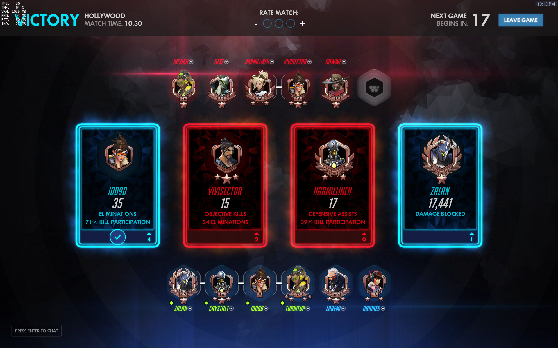 Első meccs az egy KOTH volt, nyertünk, de sok közöm nem volt hozzá, abszolút nem találtam a helyem, nem az én szintem volt. Utána jött Hollywood oda-vissza, ez viszont nagyon bejött. Főleg a védekezés része, közel 3 perc volt hátra és 30cm-re volt az ellenfél a céltól, de köszönhetően egy bizonyos Tracernek, megfogta a támadást. Íme a végeredmény erről: