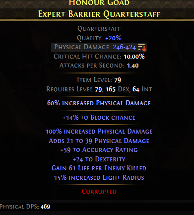 Az Expert barrier egy 24 szinttel magasabb igényű staff, már eleve 40%-kal nagyobb minimum sebzés értékkel, persze, hogy egy gyengébb roll is nagyobb sebzést generál.