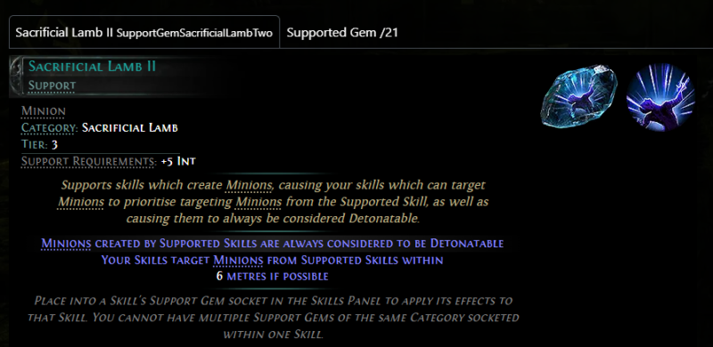 De ha már itt tartunk a Sacifical Lamb support gem mire való, ha nem arra hogy a saját minionjaidat felrobbantsd?