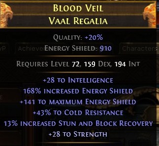 Közben valószínűleg rájöttem, rollolt a gyerek még egy ilyet is rá "Local Energy Shield +% Base Stun Recovery +% " és a két értéket összeadta.