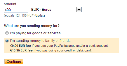 A PayPal ajánlása szerint ilyenkor forintot kell utalni, noha úgy rémlik, a topikban próbálkoztak már mással is, végül valahogy az is megérkezett. Hogy mennyivel lassabban, vagy milyen hátulütőkkel (pénz váltogatása közben oda-vissza?), erre pontosan már nem emlékszem.