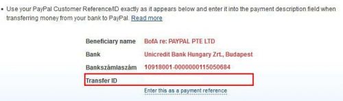 "FIGYELMEZTETÉS: Biztonsági okok miatt csak SAJÁT PayPal számla feltöltése lehetséges és kizárólag SAJÁT bankszámlájáról. Ha a bankszámlához nyilvántartott vezeték- és keresztnév nem egyezik a PayPal számla tulajdonosának vezeték- és keresztnevével a PayPal az ilyen transzakciót visszaküldi a feladó számlájára."