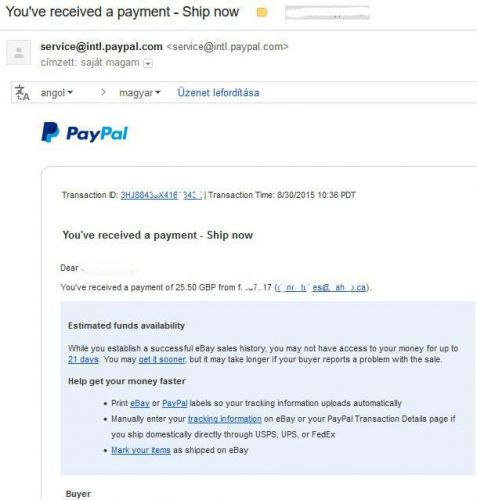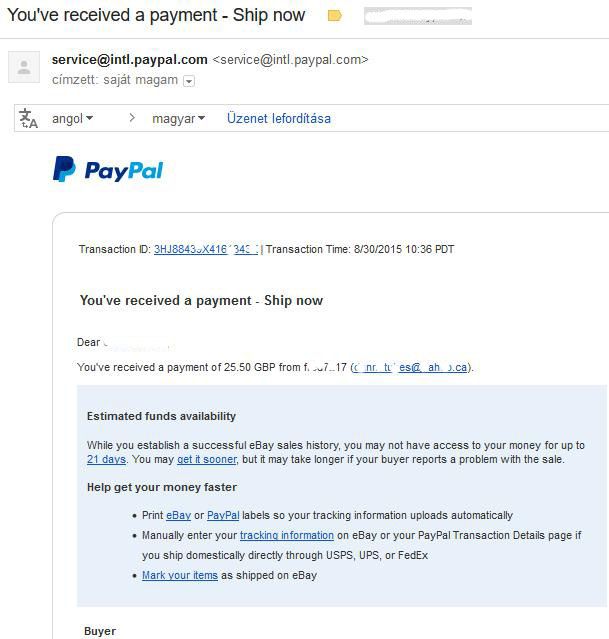 De a lényeges kérdésre nem válaszoltál. Mit látsz a Paypal egyenlegen? Ott van a 250 Euró? Mert ez az e-mail. az amit ő kapott, neked is jönni kell egy e-mailnek. Mindjárt keresem a mintát. -