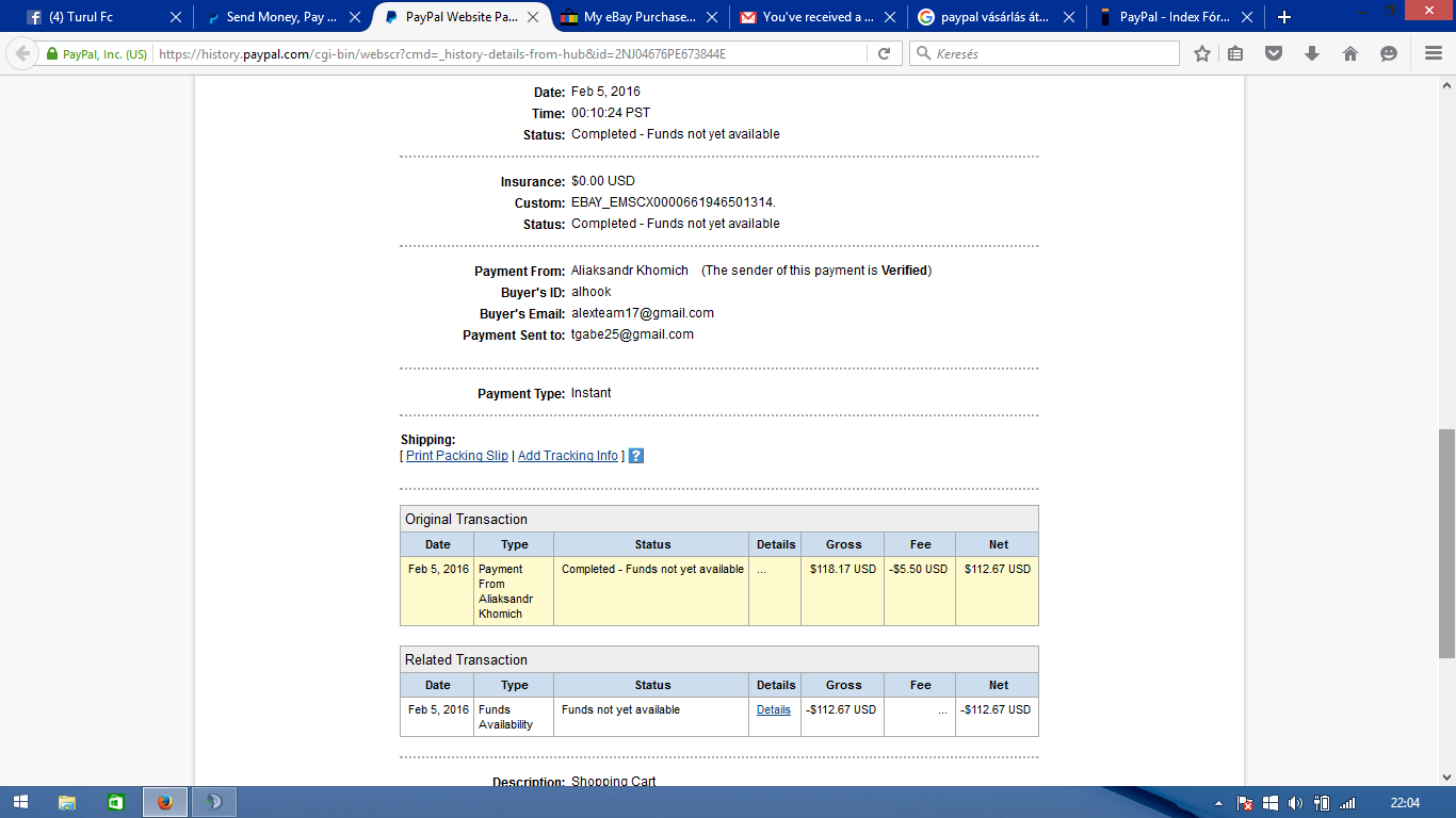 Adott egy hirdetés. Valaki megvette, és elvileg rajtam keresztül fizettette ki. A tranzakció végbement 5-ödikén 00:10 perckor. Semmi nyoma vásárlásnak semminek se csak kaptam ezt az e-mailt. Hozzáteszem nem bankkártyás hanem top up-os azaz fel kell tlteni az egyenleget és ott van a mínusz egyenleg... Megcsináltam mindent amit írtál, azt írja "Transaction IDs are not valid" azaz nem tudok semmit se kezdeni vele