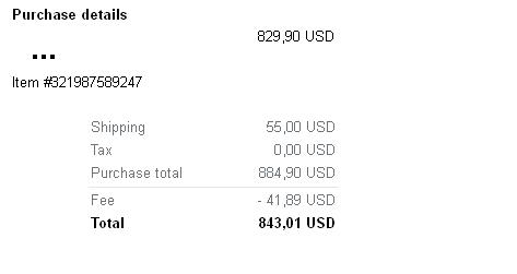Ebay-es eladást követően beérkezett a számlámra 829,90 USD + 55 USD postaköltség. A paypal jutalékként levont 41,89 dollárt. Tudnátok segíteni, hogy ez az összeg hogy jött ki?