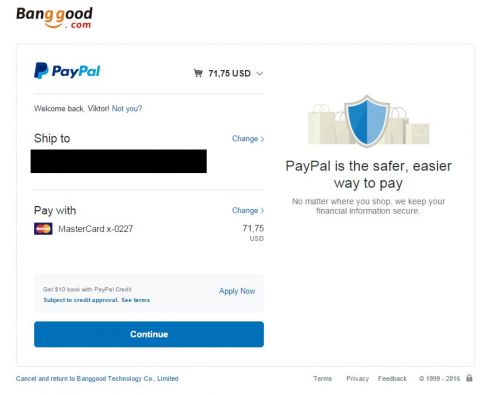 A Paypal cím és a Geekbuying cím megegyezik? -