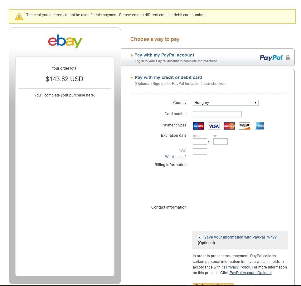 Egyszerű, adjál hozzá kártyát a Paypal fiókodhoz, mert anélkül nem tudsz ott fizetni. többször leírtam, magyarul is.