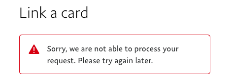 Amikor meg a kártyát próbálnám "linkelni" akkor meg azt írja hogy próbáljam meg később, elég sokszór próbáltam és nem engedi